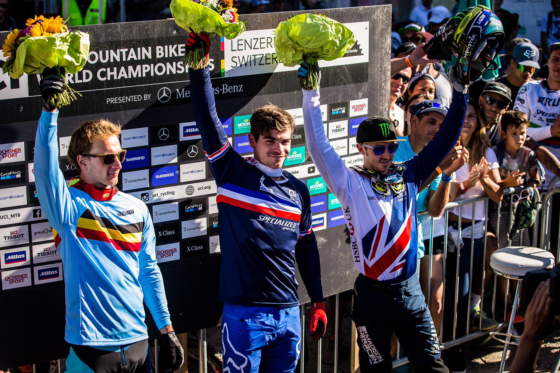 After a season dominating the top ten at UCI World Cup races, Maxxis’ sponsored riders capped 2018 with an Elite Men’s XCO podium sweep and seven top ten spots in Elite Men’s DH at the UCI MTB World Championships. Nino Schurter took top honors in Elite Men’s XCO, with Gerhard Kerschbaumer and Mathieu Van der Poel joining him on the podium in second and third place. Danny Hart made the Elite Men’s DH podium in third place. The races were held September 5-9 in Lenzerheide, Switzerland.