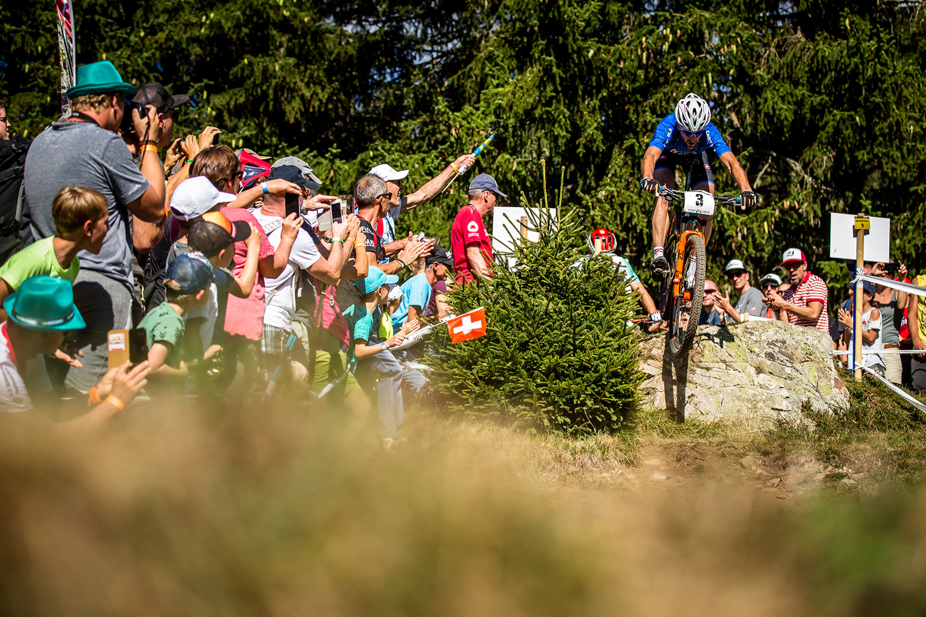 Schurter took a commanding lead on the first lap of the XCO race, with Kerschbaumer soon close behind. The Swiss native increased his margin in the final lap, winning by 11 seconds. Van der Poel gained the third spot in Lap 4 and maintained his position through the end of the race. “This is definitely a special win, and I would say the best one,” Schurter told cyclingnews.com. “Getting to race here with so many people out there cheering for me was incredible. It was so loud out on the course.”