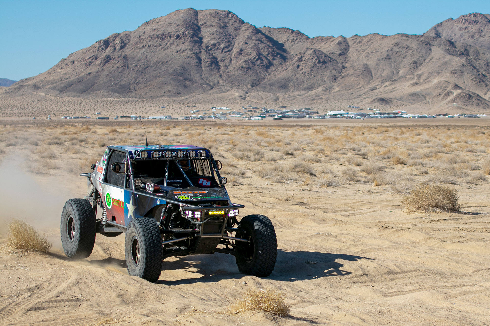 Rufus Racing began just four years ago when Willems attended his first KOH and was inspired to build a team with a group of off-road-loving friends. As the team grew, they became known for maintaining a friendly, generous atmosphere around their signature green tent, in addition to delivering thrilling races to fans. Over just the last year, Rufus Racing has competed in the SCORE Baja 400 and SCORE Baja 1000; the Visions Off-Road 4400 Endurance Race, in which they took podium spots in second and third place; last year’s KOH, in which both their 4400 and 4900 cars placed 19th; the Ultra 4 Nationals, in which their 4400 car placed 11th in national points standings; and a third-place 4400 finish in the East Coast series.